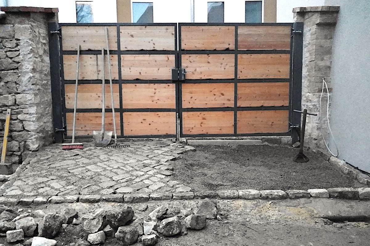 Im hinteren Bereich des Grundstückes ist ein Teil der ehemaligen Hintergebäude von dem Ferienhaus Mittelgasse 15 erhalten geblieben. Der Weg zwischen diesem charmanten zweistöckigen Gartenhäuschen und dem Vorderhaus wurde mit einem Kalkstein – Reihenpflaster und Kalksteinplatten befestigt. Das Material dafür wie auch die fünf Kalksteinstufen zum Haus konnten überwiegend im Grundstück geborgen werden.